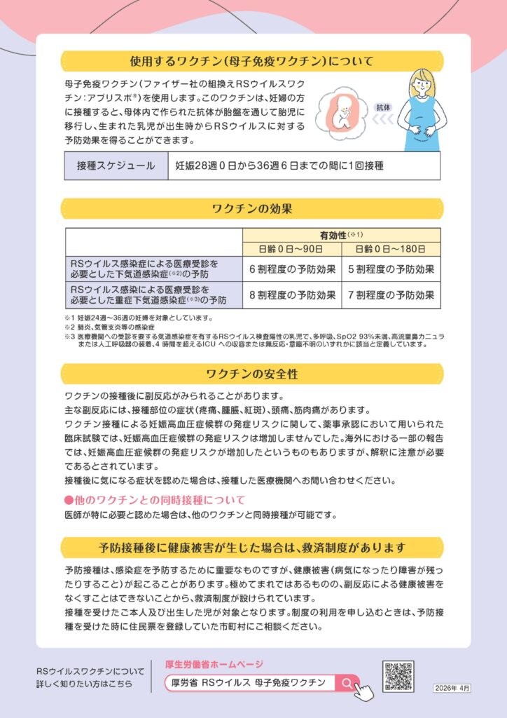 【重要】RSウイルス母子免疫ワクチンの定期接種について